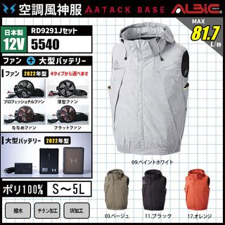 空調風神服 5540 ベスト 日本製 12V フルセット RD9291J