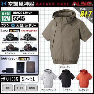 空調風神服 5545 半袖 日本製 12V フルセット RD9291J