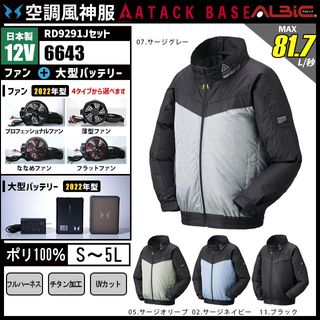 空調風神服 6643 ブルゾン 日本製 12V フルセット RD9291J