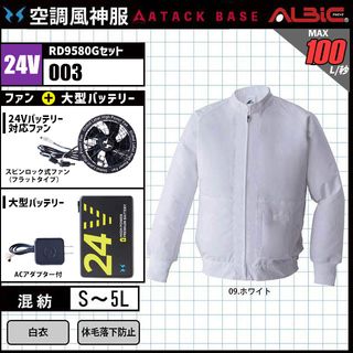 空調風神服 003 白衣 24V フルセット RD9580G