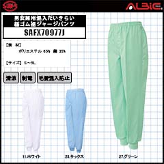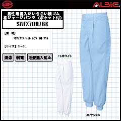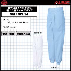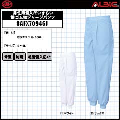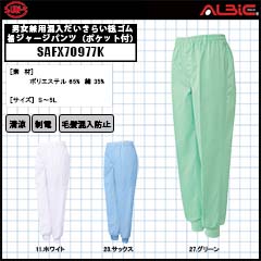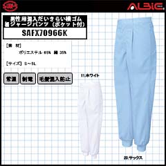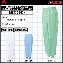 【SAFX70967K】_男女兼用混入だいきらい総ゴム裾ジャージ(ポケット付)_食品工場用白衣