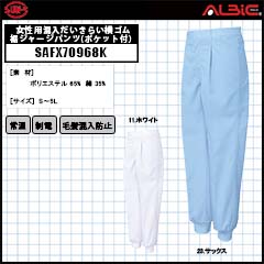 【SAFX70968K】_女性用混入だいきらい横ゴム裾ジャージパンツ(ポケット付)_食品工場用白衣