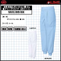 【SAFX70978K】_女性用混入だいきらい横ゴム裾ジャージパンツ(ポケット)_食品工場用白衣