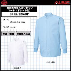 【SAFX70940P】_男女兼用混入だいきらいコート(ポケット付)_食品工場用白衣