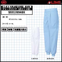 【SAFX70948K】_女性用混入だいきらい横ゴム裾ジャージパンツ(ポケット付)_食品工場用白衣