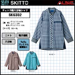 【SK6352】_チェック柄八分袖シャツ_ユニフォーム