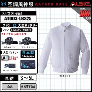 【AT003-LBS25(24V) セット】_食品工場-白衣長袖+ファン+日本製24Vバッテリー2025年型set_(空調風神服)