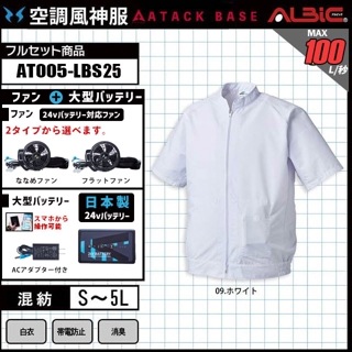 【AT005-LBS25(24V) セット】_食品工場-白衣半袖+ファン+日本製24Vバッテリー2025年型set_(空調風神服)