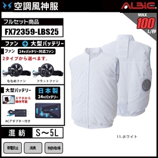 【FX72359-LBS25(24V) セット】_食品工場-白衣ベスト+ファン+日本製24Vバッテリー2025年型set_(空調風神服)