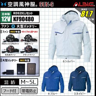 空調風神服 KF90480 ブルゾン 日本製 12V フルセット RD9291J (旧:KU90480)