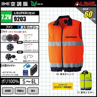 空調服 9203 高視認ベスト 7.2V フルセット LISUPER1