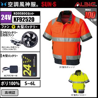 空調風神服 KF92520 高視認半袖 24V フルセット RD9580G