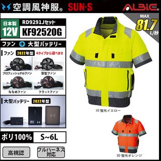 空調風神服 KF92520G 高視認半袖 日本製 12V フルセット RD9291J