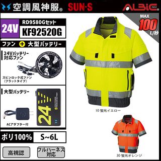空調風神服 KF92520G 高視認半袖 24V フルセット RD9580G