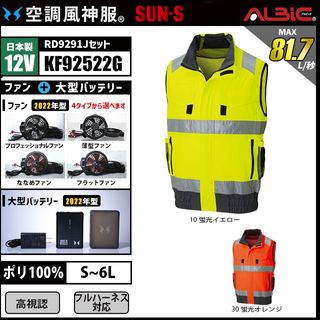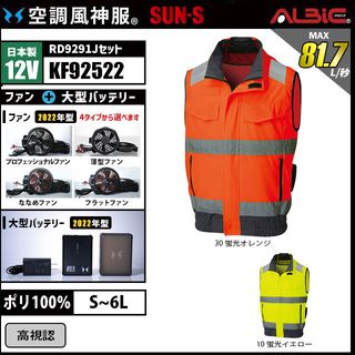 空調風神服 KF92522 高視認ベスト 日本製 12V フルセット RD9291J