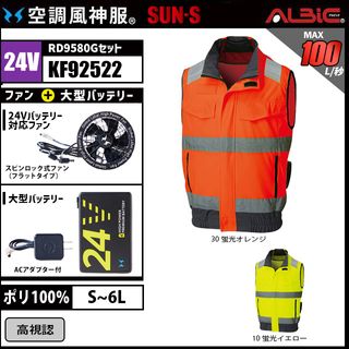 空調風神服 KF92522 高視認ベスト 24V フルセット RD9580G