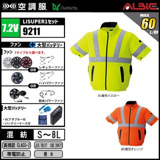 空調服 9211 高視認半袖 7.2V フルセット LISUPER1