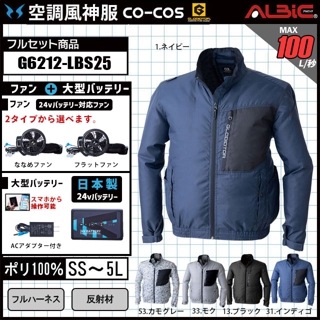 【G6212-LBS25(24V) セット】_フルハーネス対応ブルゾン+ファン+日本製24Vバッテリー2025年型set_(空調風神服)