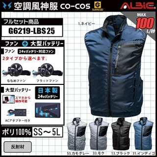 【G6219-LBS25(24V) セット】_ベスト+ファン+日本製24Vバッテリー2025年型set_(空調風神服)