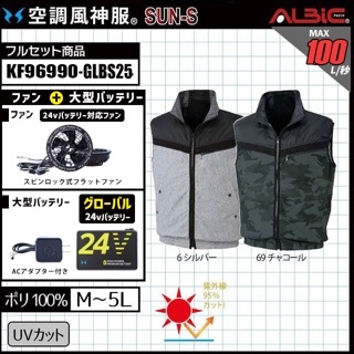 【KF96990-GLBS25 (24V) セット】_ベスト+ファン+バッテリー2025年型(グローバルモデル)set_(空調風神服_旧:KU96990)