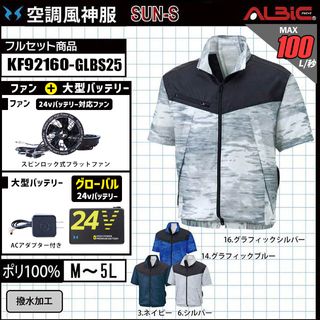 【KF92160-GLBS25 (24V) セット】_撥水-半袖ブルゾン+ファン+バッテリー2025年型(グローバルモデル)set_(空調風神服_旧:KU92160)