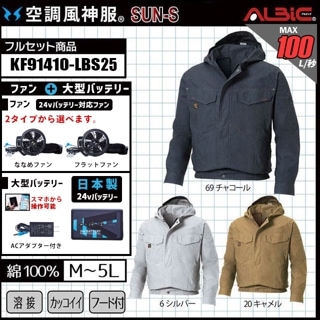 【KF91410-LBS25(24V) セット】_綿100%フード付きブルゾン+ファン+日本製24Vバッテリー2025年型set_(空調風神服_旧:KU91410)