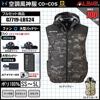 【販売終了】_【G7719-LBS24(24V) セット】_フード付きベスト+ファン+バッテリー2024年型set_(空調風神服)