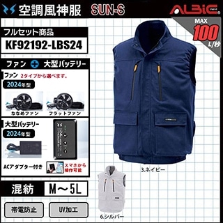 【販売終了】_【KF92192-LBS24(24V) セット】_帯電防止べスト+ファン+バッテリー2024年型set_(空調風神服_旧:KU92192)