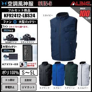 【販売終了】_【KF92412-LBS24(24V) セット】_エコ制電ベスト+ファン+バッテリー2024年型set_(空調風神服)
