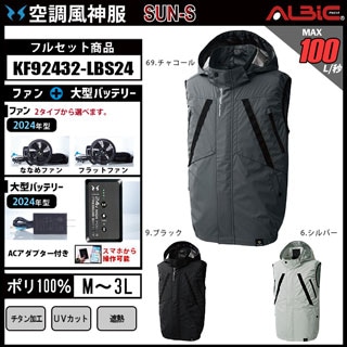 【販売終了】_【KF92162-LBS24(24V) セット】_撥水ベスト+ファン+バッテリー2024年型set_(空調風神服_旧:KU92162)