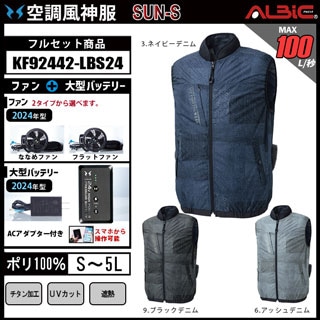 【販売終了】_【KF92442-LBS24(24V) セット】_デニム調ベスト+ファン+バッテリー2024年型set_(空調風神服)
