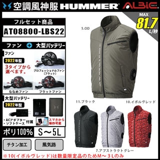 【販売終了】_【AT08800-LBS22(12V) セット】_HUMMER チタンベスト+ファン+日本製バッテリー2022年型set_(空調風神服)